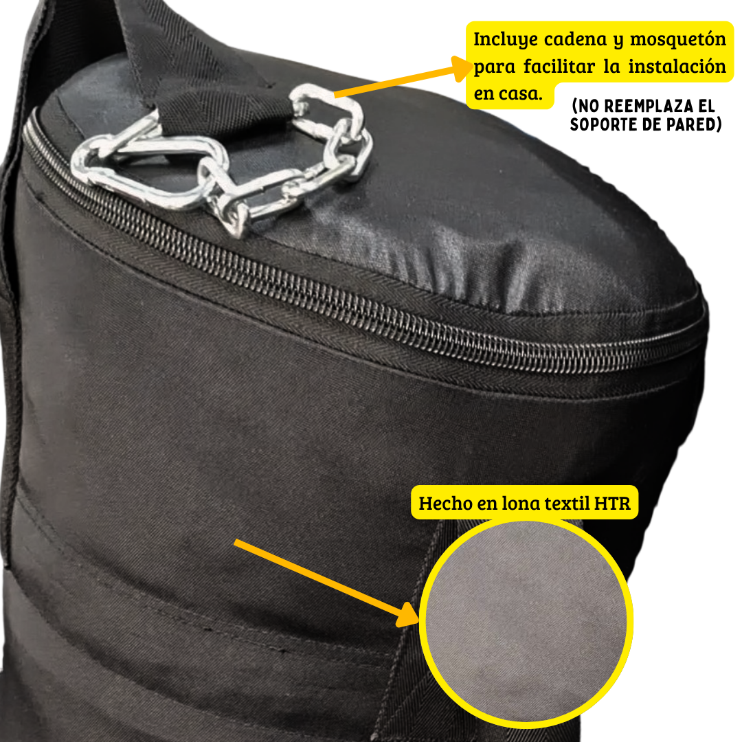 - El saco de boxeo se envía pesando 58 libras y lo puedes rellenar mas, soporta hasta 70 libras