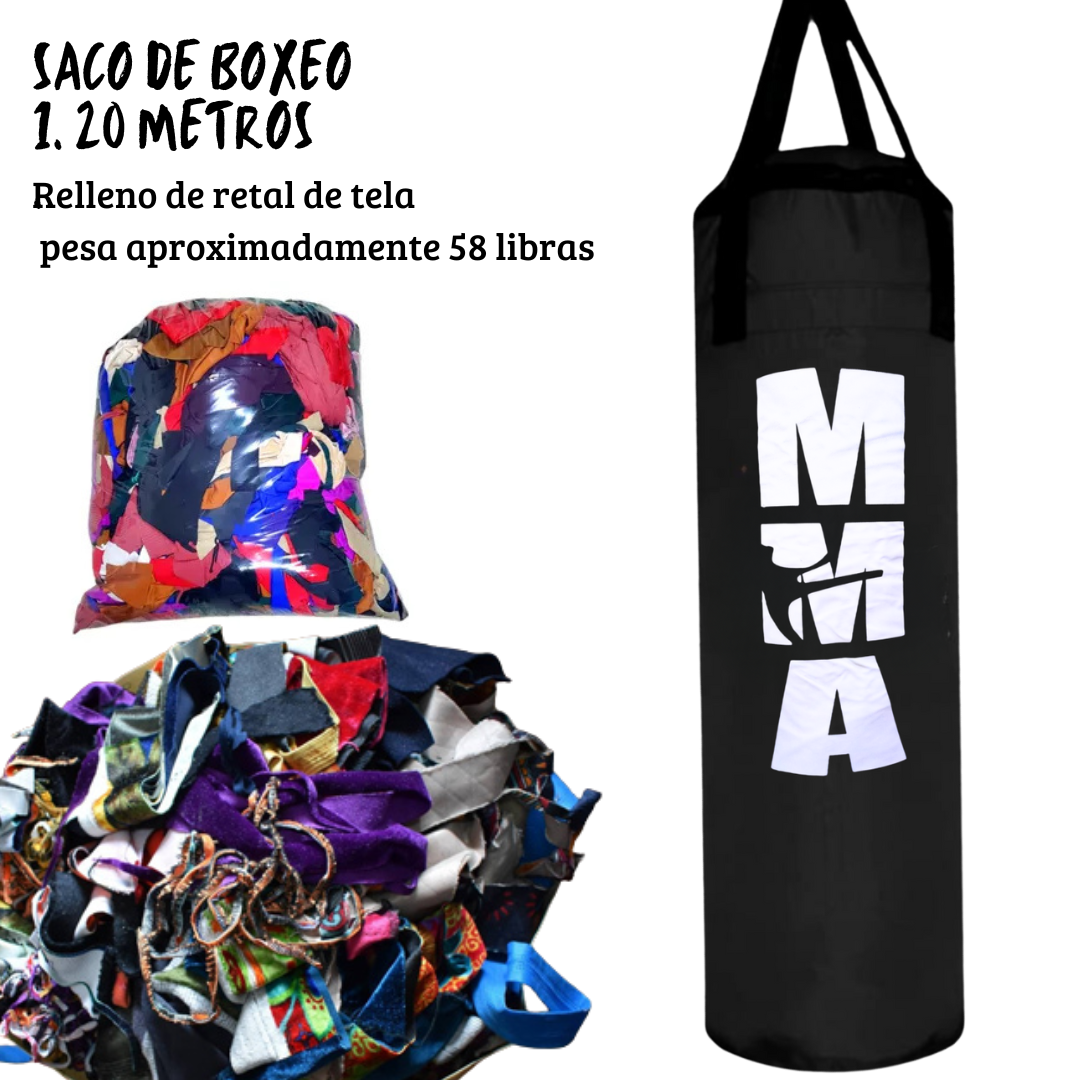 - Material saco de boxeo: Lona s100% relleno de retal de tela